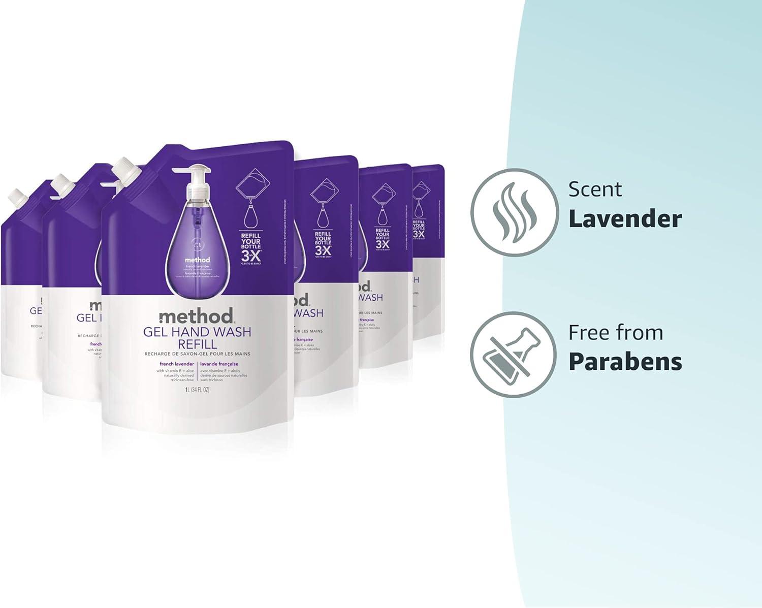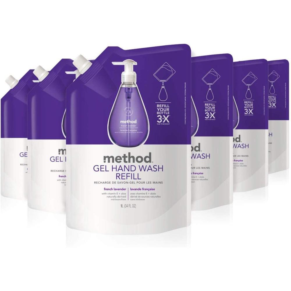Contains (6) 34 ounce refill pouches of liquid hand soap.