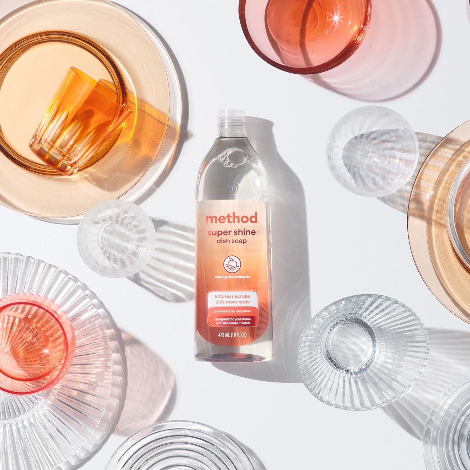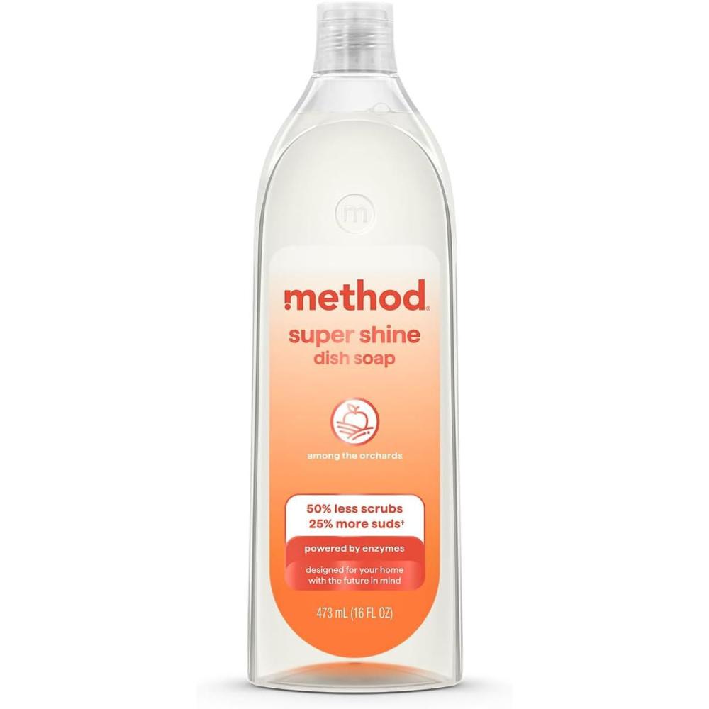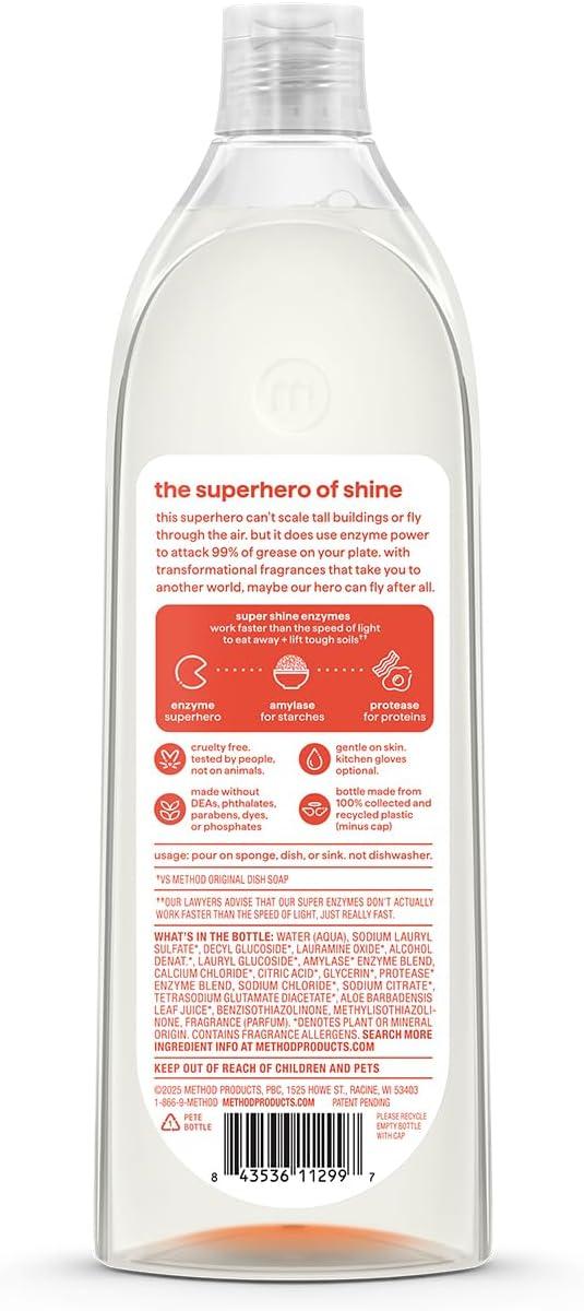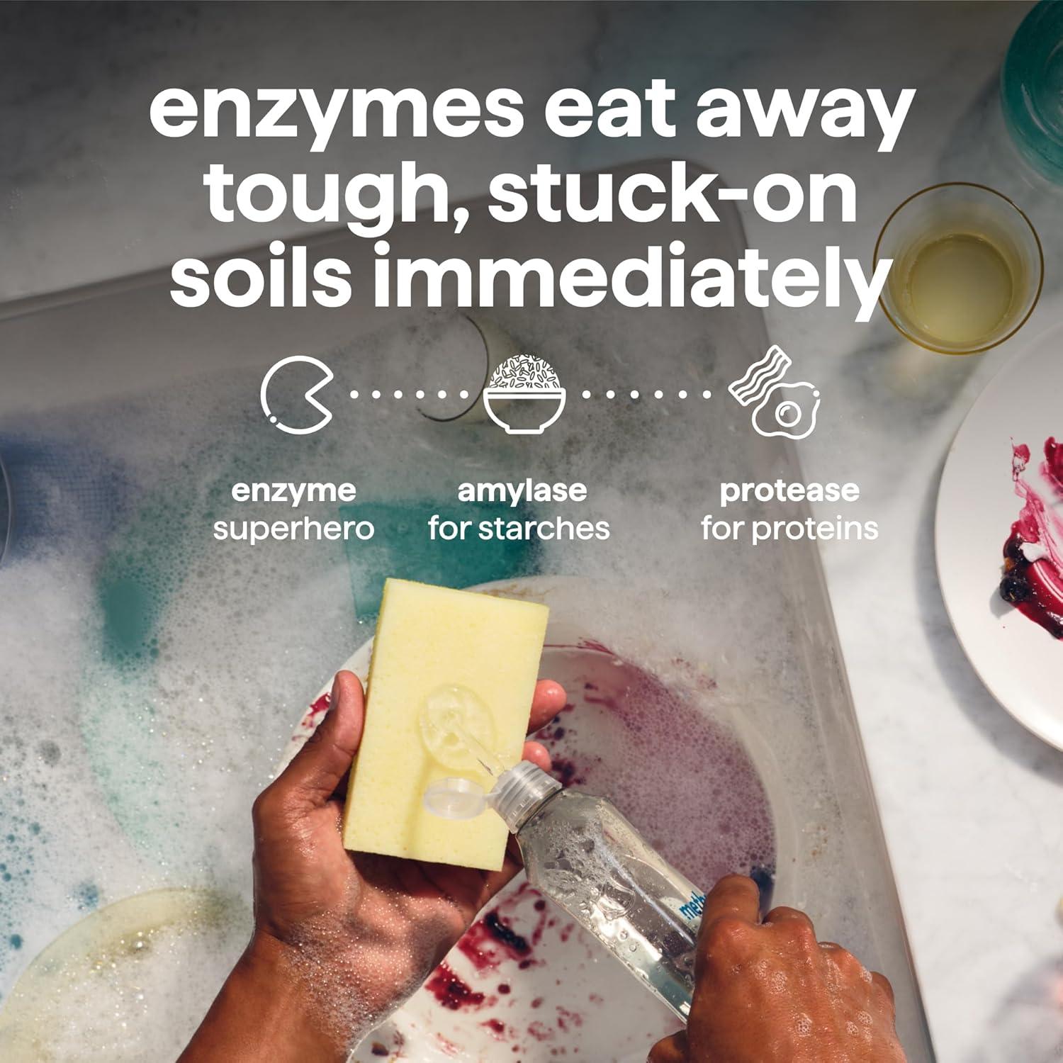 POWERED BY ENZYMES: Removes up to 99% of grease, with 50% less scrubs and 25% more suds* (*vs. original method dish soap)
