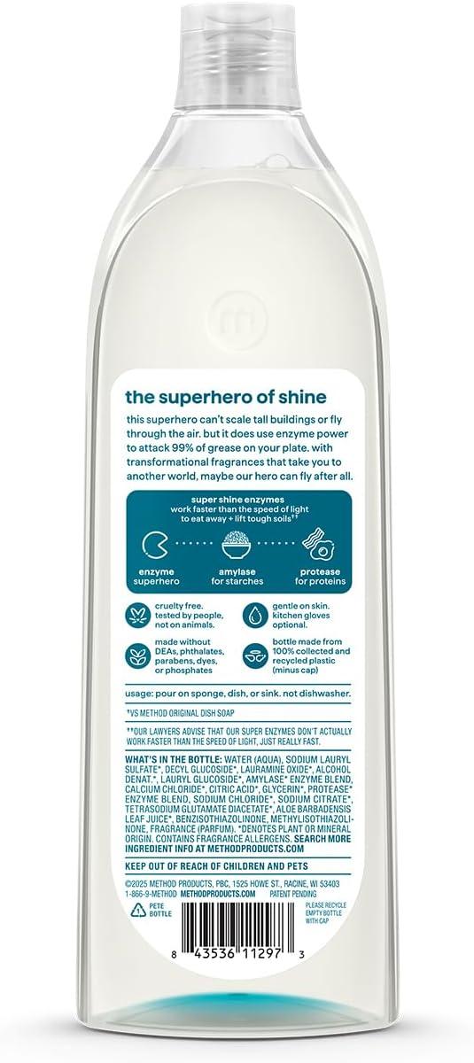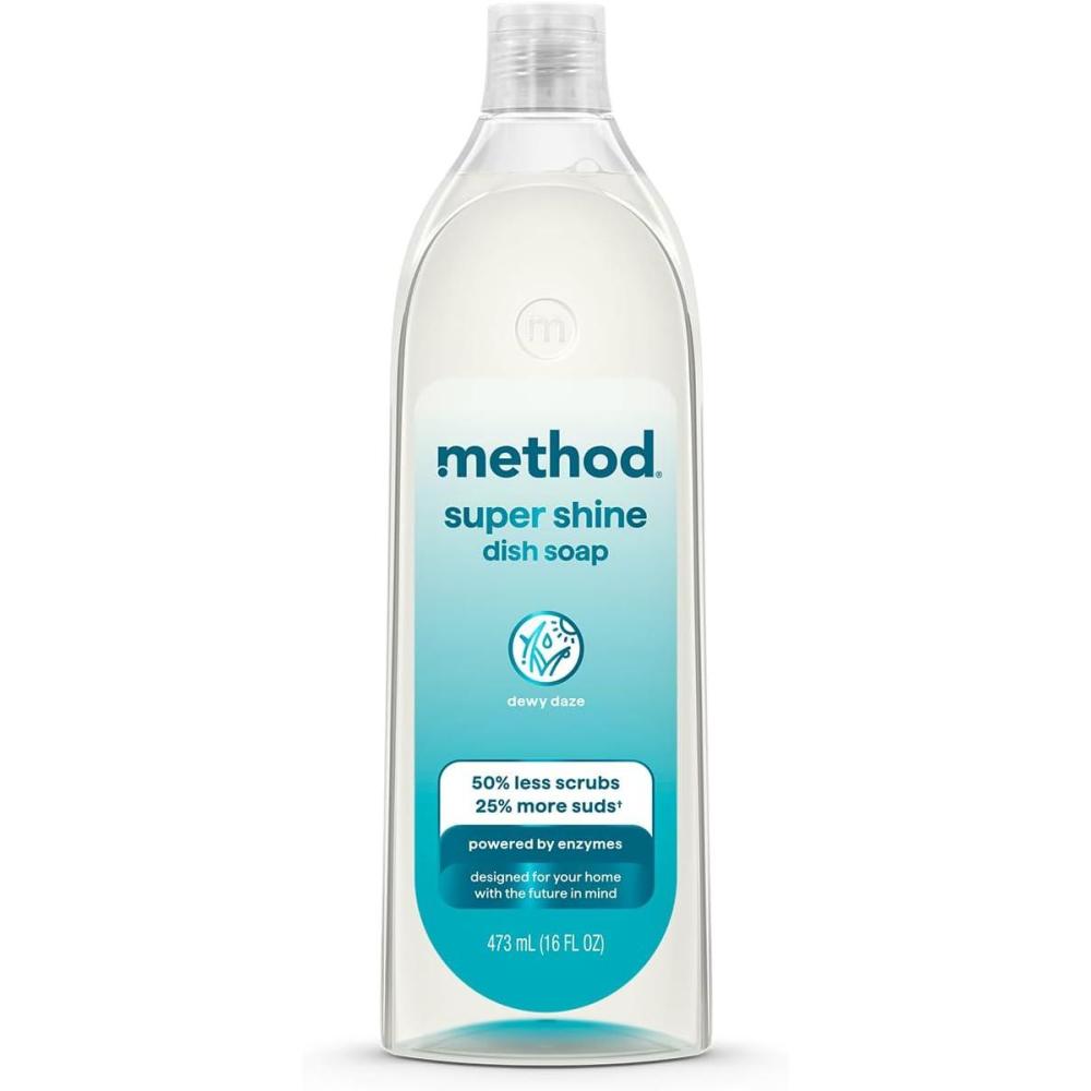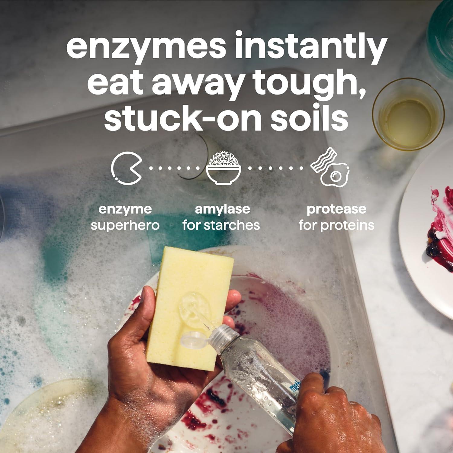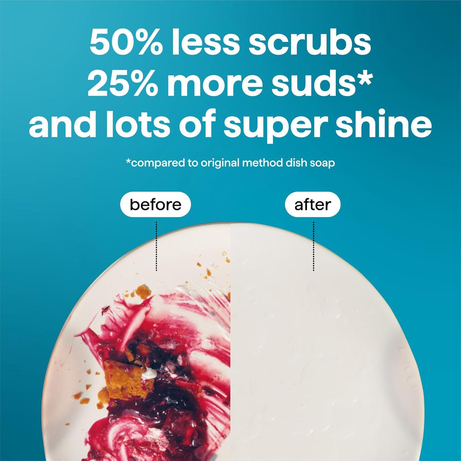 POWERED BY ENZYMES: Removes up to 99% of grease, with 50% less scrubs and 25% more suds* (*vs. original method dish soap)